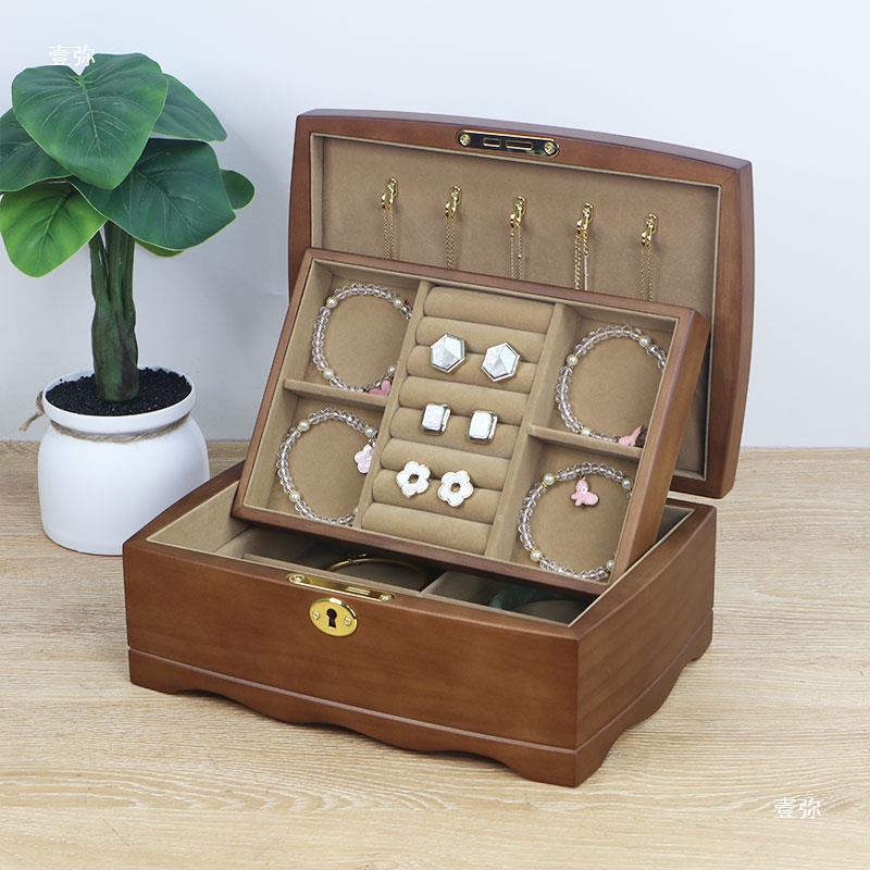 Jeder Schmuck hat seinen Platz, das Altes Schmuckkästchen Holz mit Fächern und Haken sorgt dafür, dass er dank des Schlosses sicher aufbewahrt wird.