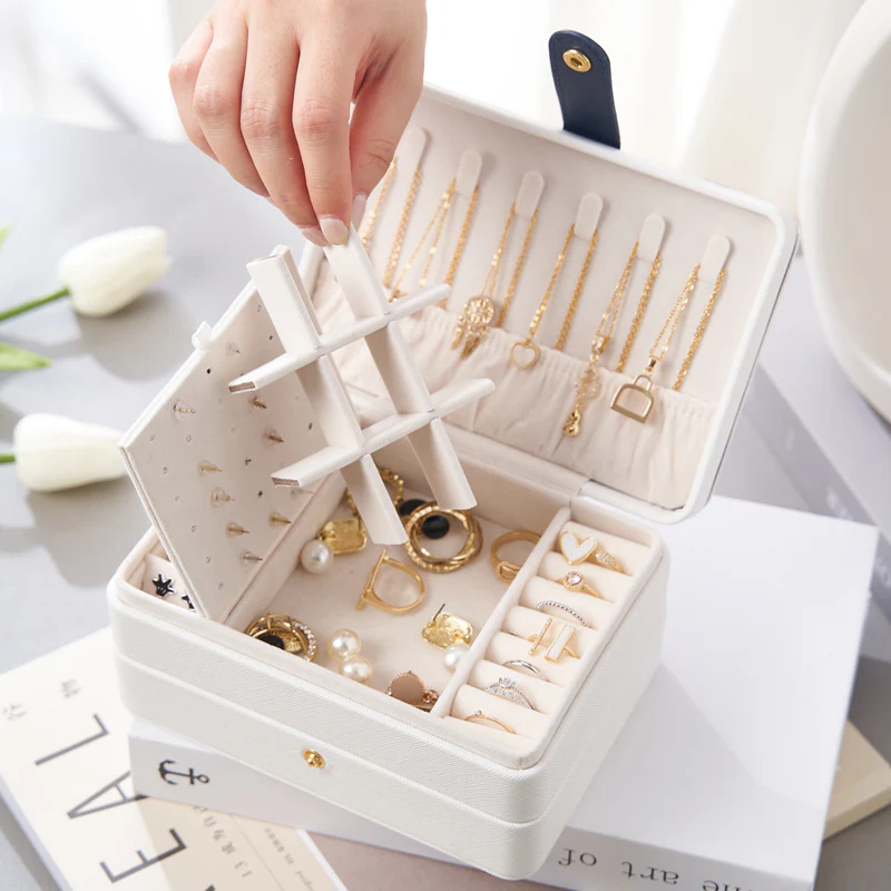 Wählen Sie diese Mittelgroße Schmuckschatulle, um Ihrem Schmuck ein ausgewogenes Verhältnis von Stauraum, Tragbarkeit und Funktionalität zu bieten.