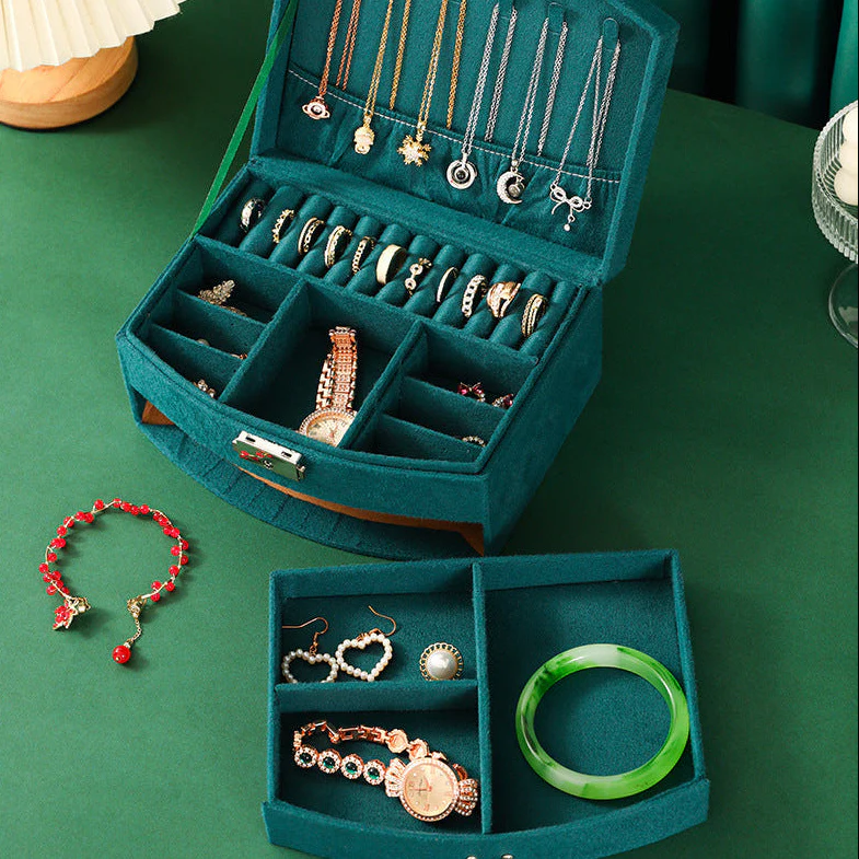 Diese Schmuckschatulle bietet eine übersichtliche Organisation und eine platzsparende Lösung zur sicheren Aufbewahrung von Lieblingsaccessoires. Perfekt, um Ordnung zu schaffen und Schmuck jederzeit griffbereit zu haben.