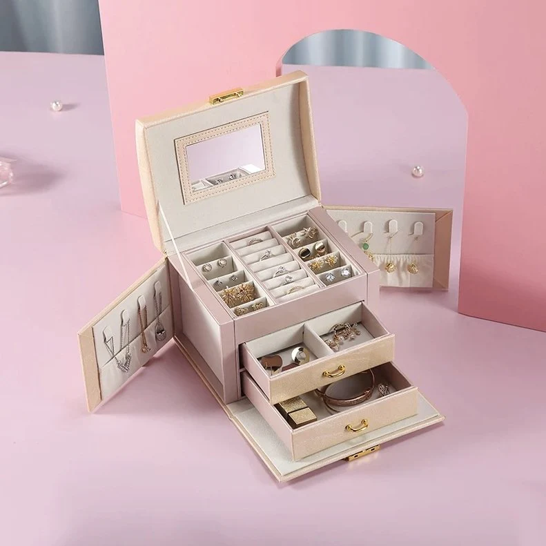 Wenn Sie Schmuck lieben, brauchen Sie sicher dieses Schmuckkästchen Abschließbar, um ihn aufzubewahren. Es enthält viele Vorteile, um nur von dem Platz zu sprechen, den es für Ihre Accessoires bereithält: herausnehmbare Schubladen für Kosmetika und Uhren, Haken für Halsketten und Schmuck, Fächer, um Ihre Haarbroschen an den richtigen Platz zu bringen, und um Ihre Ringe sicher und ordentlich aufzubewahren. Die Box wird mit einem Schlüssel verriegelt und hat einen Tragegriff.
