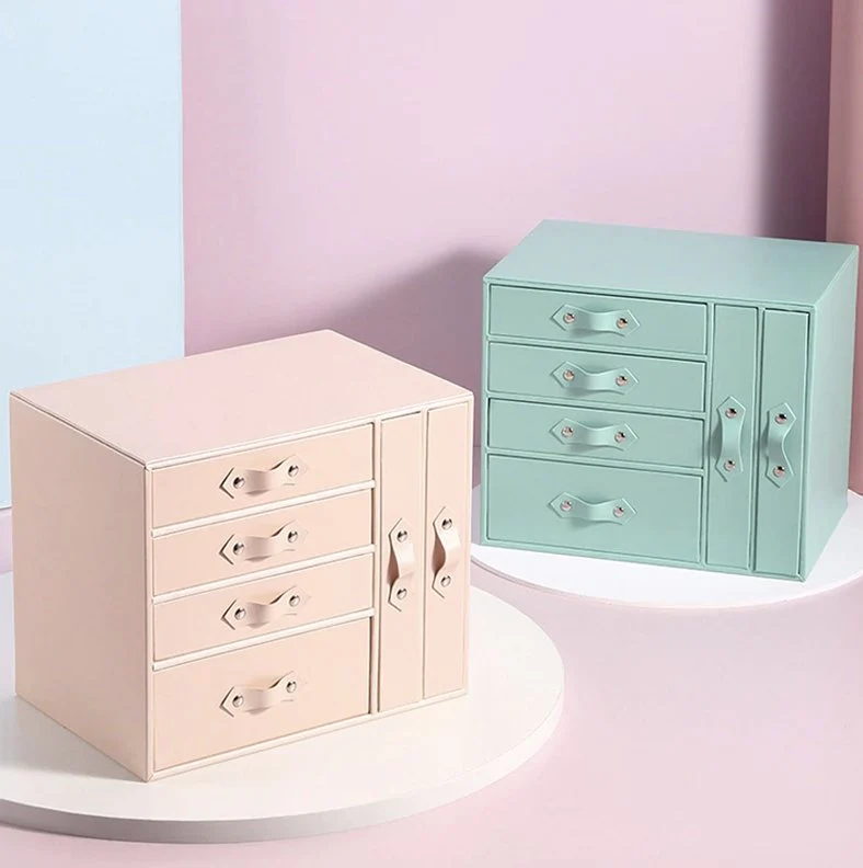Schmuckkästchen Mit Inhalt ist perfekt für Ihre Schmucksammlung. Es hat mehrere herausnehmbare Schubladen, von denen sich zwei an den Seiten befinden.